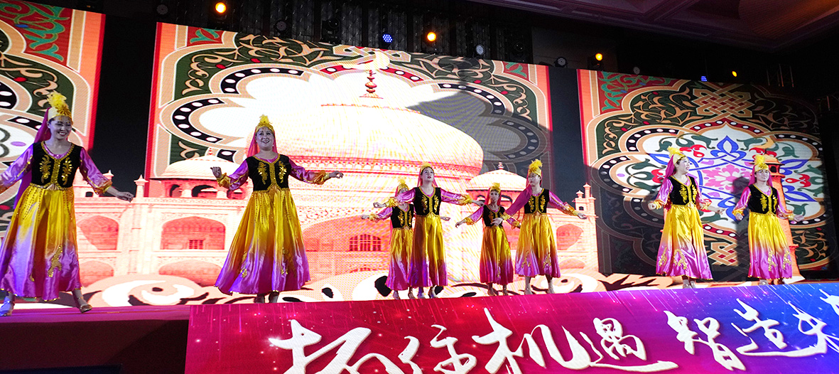 年会盛典在《回眸2019 展望2020》的视频播放中拉开了大幕,2019年的点点滴滴似乎就在眼前,鼓舞着员工不忘初心,奋力向前,2020年的号角已经吹响,激励着我们同心聚力,再创辉煌。开场舞《团团圆圆》喜庆登场,7名年轻活泼的美少女一下点燃了年会盛典的现场,将欢乐和吉祥送给现场的每位来宾和EBET易博的家人们……