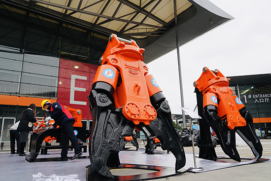 24日上午展会一开场,EBET易博精密展区前便围满了前来参观的厂商代表。以本次展会为契机,EBET易博精密带来了9000F和10000F等重磅液压破碎锤,充分展现了中国制造高端形象,令参观厂商代表惊叹不已。