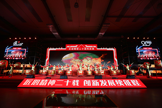 合唱《撸起袖子加油干》、鼓舞《战鼓铮铮》、诗朗诵《匠心二十载 创新向未来》、走秀《EBET易博工人有力量》,以及合唱《少年》,展现了EBET易博人从创业初期一路走来的艰辛岁月,从青丝到白发,从懵懂到坚定,他们无悔无畏、信心满怀。